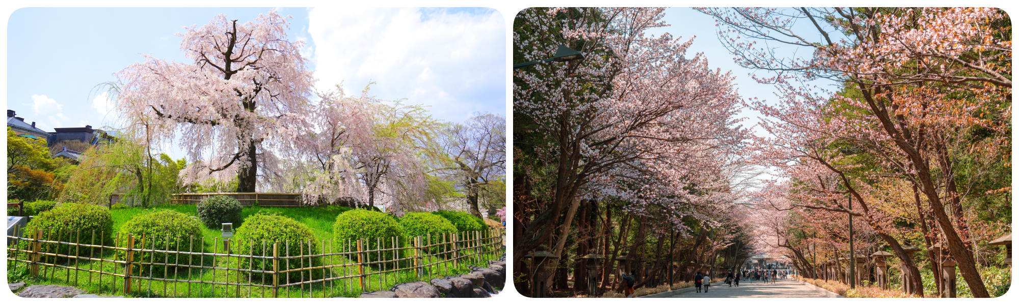 เริ่มต้นด้วยความงดงามที่ทรงพลัง ต้นซากุระกว่า 3,000 ต้นที่ล้อมรอบปราสาทโบราณอันยิ่งใหญ่ เมื่อแสงแดดอุ่นๆ ตกกระทบกลีบดอกสีชมพูอ่อน ตัดกับความแข็งแกร่งของกำแพงหินและหลังคาสีเขียวทอง เกิดเป็นมิติของแสงและเงาที่สอดประสานกันอย่างลงตัว เป็นความงามคลาสสิกที่ดึงดูดใจผู้คนจากทั่วทุกมุมโลก