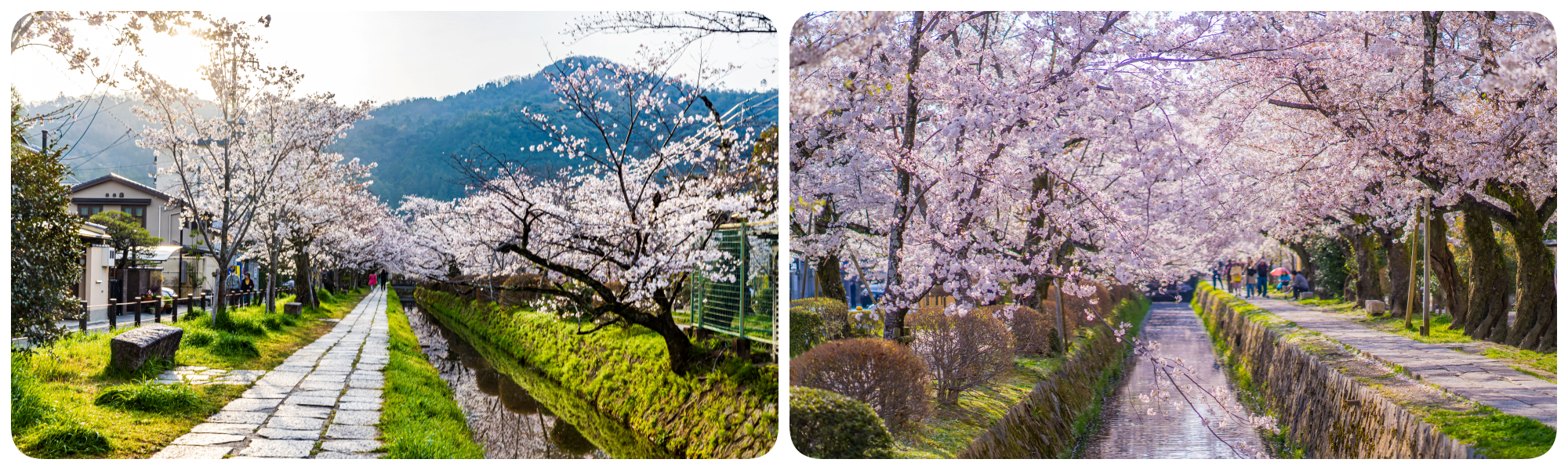 เส้นทางเดินเล็กๆ ปูด้วยหินที่ทอดยาวเลียบคลองสายเล็ก เหมาะสำหรับการเดินทอดน่องช้าๆ ซึมซับสุนทรียภาพ ปล่อยใจให้ล่องลอยไปกับภาพความงามของซากุระที่เรียงราย เคล้าเสียงน้ำไหลเอื่อยๆ เป็นการเดินทางที่ทำให้เราได้กลับมาเชื่อมต่อกับความสงบภายในจิตใจอีกครั้ง