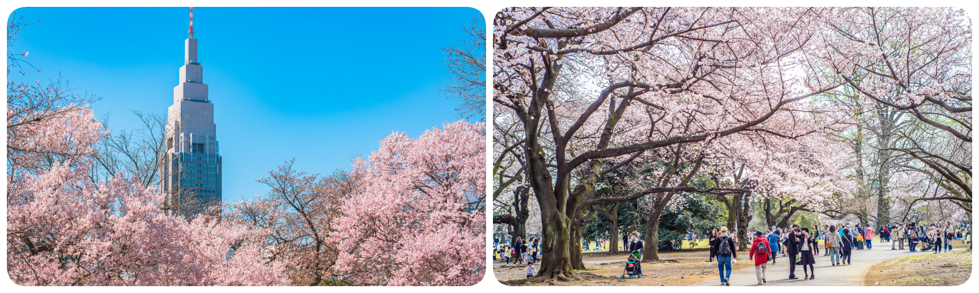 โอเอซิสขนาดใหญ่ใจกลางเมืองหลวงที่ผสมผสานภูมิทัศน์หลากหลายสไตล์เข้าด้วยกัน ซากุระหลากสายพันธุ์ที่นี่จะค่อยๆ ทยอยบานสะพรั่งไล่เลี่ยกัน สร้างเฉดสีชมพูที่ไล่ระดับอย่างละมุนละไม การได้นั่งทอดอารมณ์บนสนามหญ้ากว้าง มองดูกิ่งซากุระที่โน้มตัวลงมาประหนึ่งการตวัดพู่กันของจิตรกรเอก เป็นความรู้สึกที่ล้ำค่าเหนือคำบรรยาย