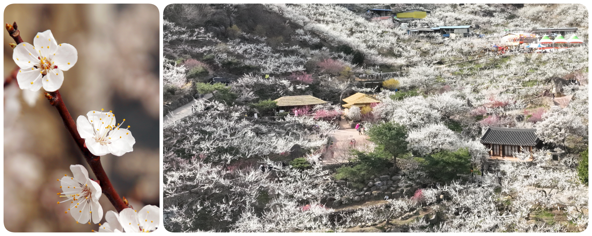 ก่อนที่พ็อดกตจะทันได้อวดโฉม “ดอกแมฮวา” ดอกพลัม หรือ “ดอกบ๊วย” (Plum Blossom) คือทูตต้อนรับฤดูใบไม้ผลิที่แท้จริง ดอกไม้ขนาดเล็กที่มีทั้งสีขาวบริสุทธิ์และสีชมพูเข้มนี้ มักจะแทงช่อบานสะพรั่งตั้งแต่ปลายฤดูหนาว แม้ในยามที่ยังมีเกล็ดหิมะบางๆ เกาะอยู่ การได้ยืนมองทุ่งดอกแมฮวาที่หมู่บ้านกวางยาง (Gwangyang Maehwa Village) พร้อมกลิ่นหอมอ่อนๆ ที่ลอยมาตามสายลมเย็น คือความรู้สึกที่ทั้งสดชื่นและสงบงามราวกับภาพวาดพู่กันจีนโบราณ
