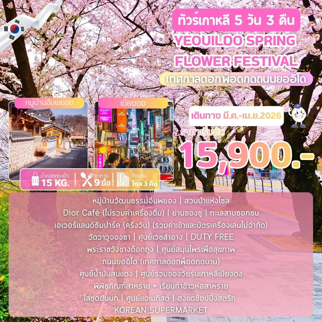 ฤดูใบไม้ผลิแห่งดินแดนเกาหลีใต้ คือความโรแมนติกที่ทุกคนถวิลหา แต่แท้จริงแล้ว ผืนผ้าใบแห่งธรรมชาติของเกาหลีใต้ในช่วงเวลานี้ ไม่ได้ถูกแต่งแต้มด้วยสีชมพูเพียงเฉดเดียว หากแต่เป็นฤดูกาลที่เต็มไปด้วยมวลดอกไม้นานาพรรณที่พากันผลิบาน แข่งขันกันเล่าเรื่องราวความงดงามในแบบฉบับของตัวเอง…