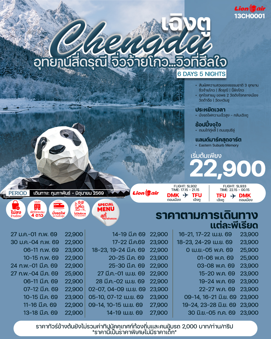 | 27 ม.ค. – 01 ก.พ. 69 | 22,900.- | 5,500.- | 17,900.- |  |