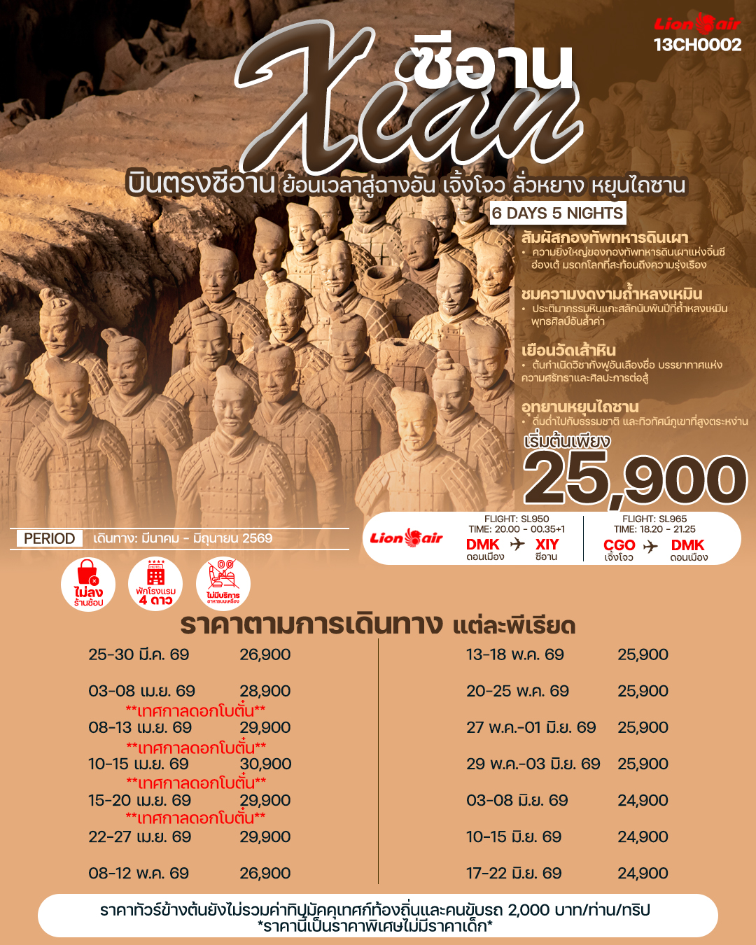 - พิพิธภัณฑ์ทหารดินเผาจิ๋นซี (รวมรถอุทยาน)