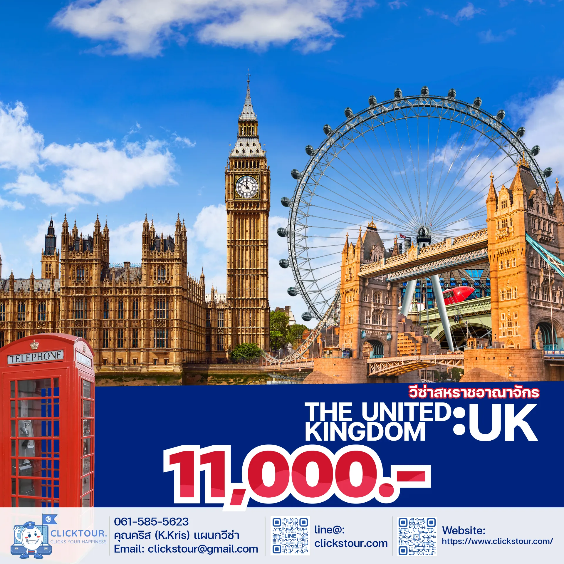 ติดต่อ Clicks.co.th วันนี้ เพื่อรับคำปรึกษาฟรีจากผู้เชี่ยวชาญด้านการรับทำวีซ่า ไม่ว่าจะเป็นวีซ่าท่องเที่ยวหรือวีซ่าประเภทอื่น ๆ เรายินดีให้บริการ!
